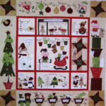 Quilt/wall hanging measuring 48″ square.  Incorporating Dresden plates and applique with a little bit of stitchery.  a lovely quilt to put on the wall for Christmas…