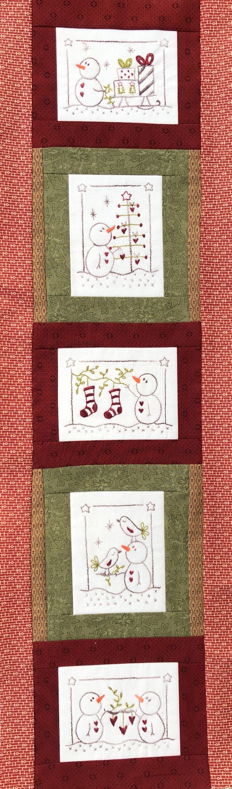 A sweet wall hanging measuring 9 1/2” x 29 1/2”. It also comes with iron on transfers for preprinting.