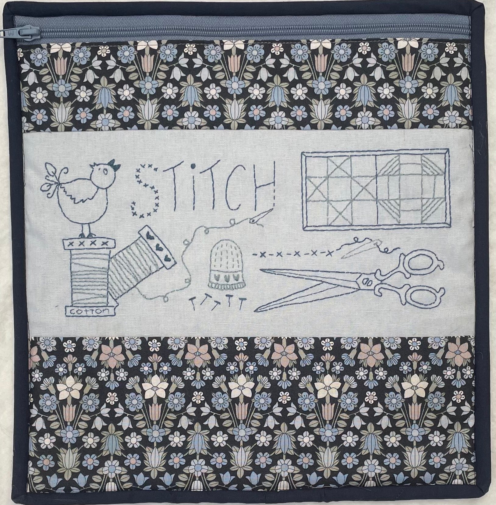 This zippered pouch measures 12” x 13” and includes iron on transfer