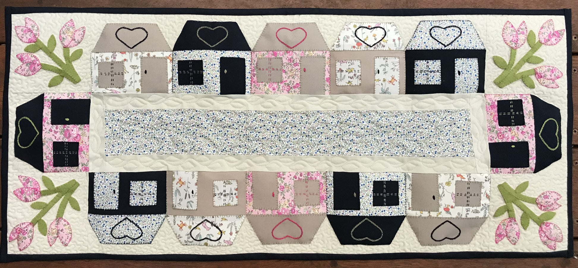This runner measures 15” x 35” and would look lovely on the centre of your table. It combines appliqué and a little bit of stitchery